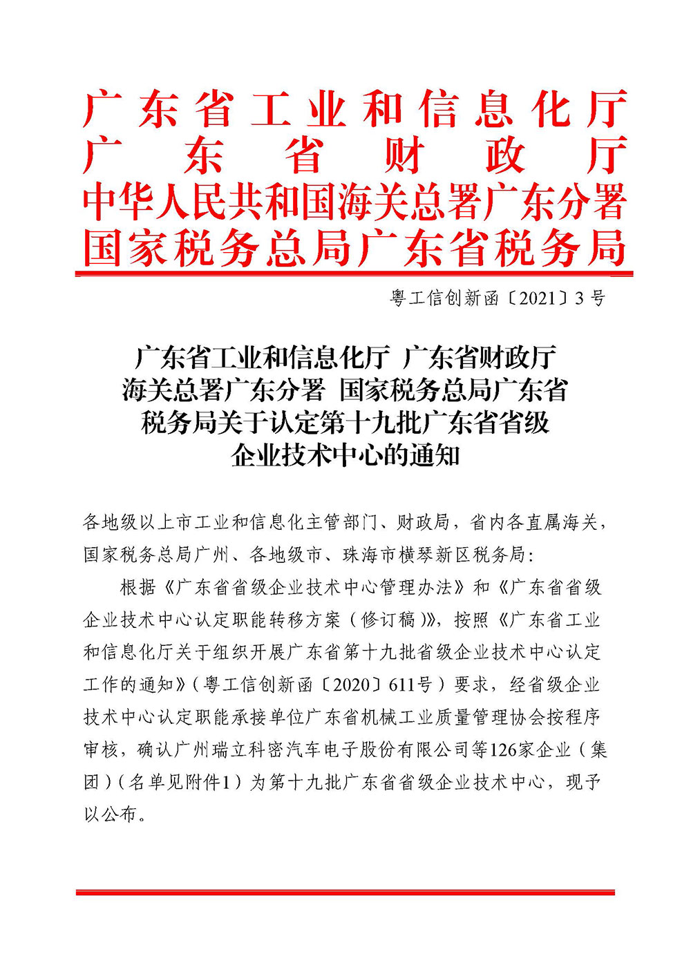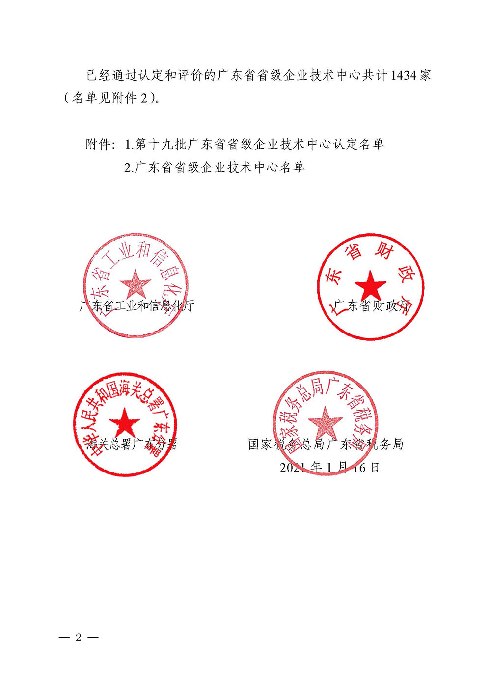熱烈祝賀公司通過第十九批廣東省省級企業技術中心認定