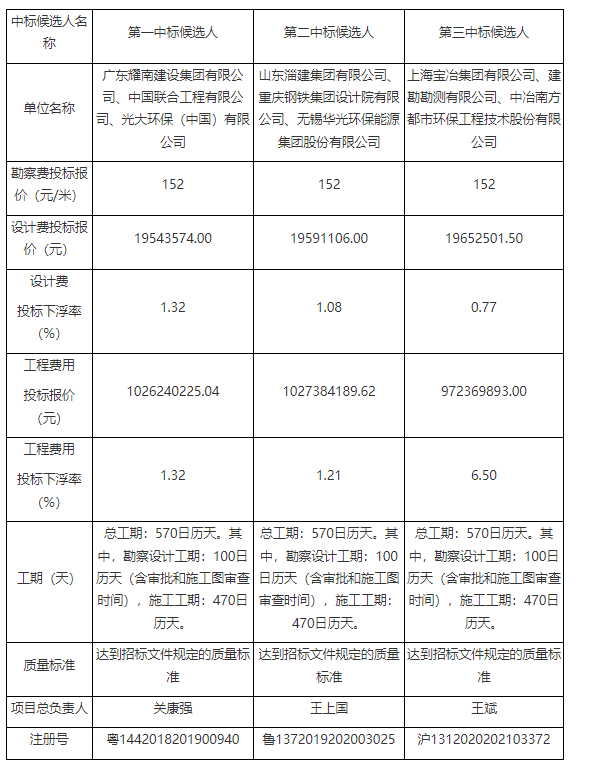 蓬江區生活垃圾資源化處置提質改造項目勘察設計施工總承包的評標工作已結束,經組織專家評審,經組織專家評審,評標委員會推薦中標候選人,現將推薦的中標候選人情況進行公示,從2022年5月13日至2022年5月17日止,公示期為3個工作日。具體情況如下: